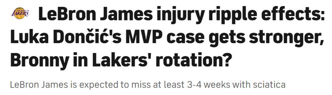 美媒解析詹姆斯缺阵影响:东契奇冲MVP更有戏?布朗尼时间或增加